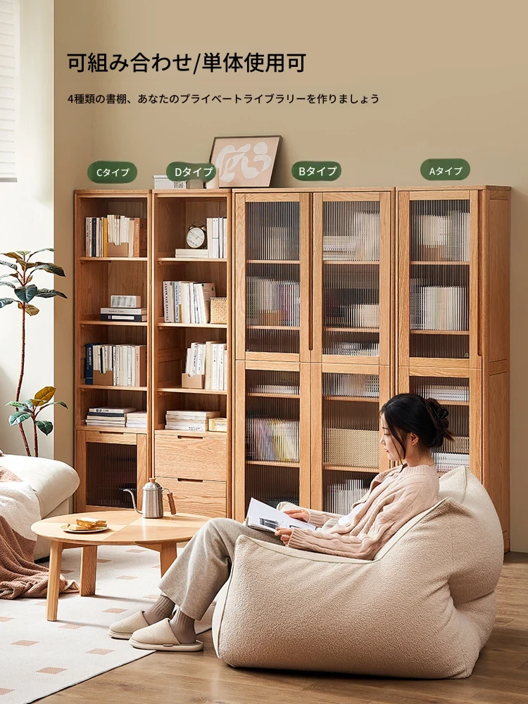 原材料使用の全無垢材を使用した現代的なシンプルデザインの書棚、オーク材のブックシェルフ!壁面にぴったりフィットする収納ラック、書斎やリビングに最適なコンビネーションキャビネット F8171。あなたの空間をおしゃれに演出します!