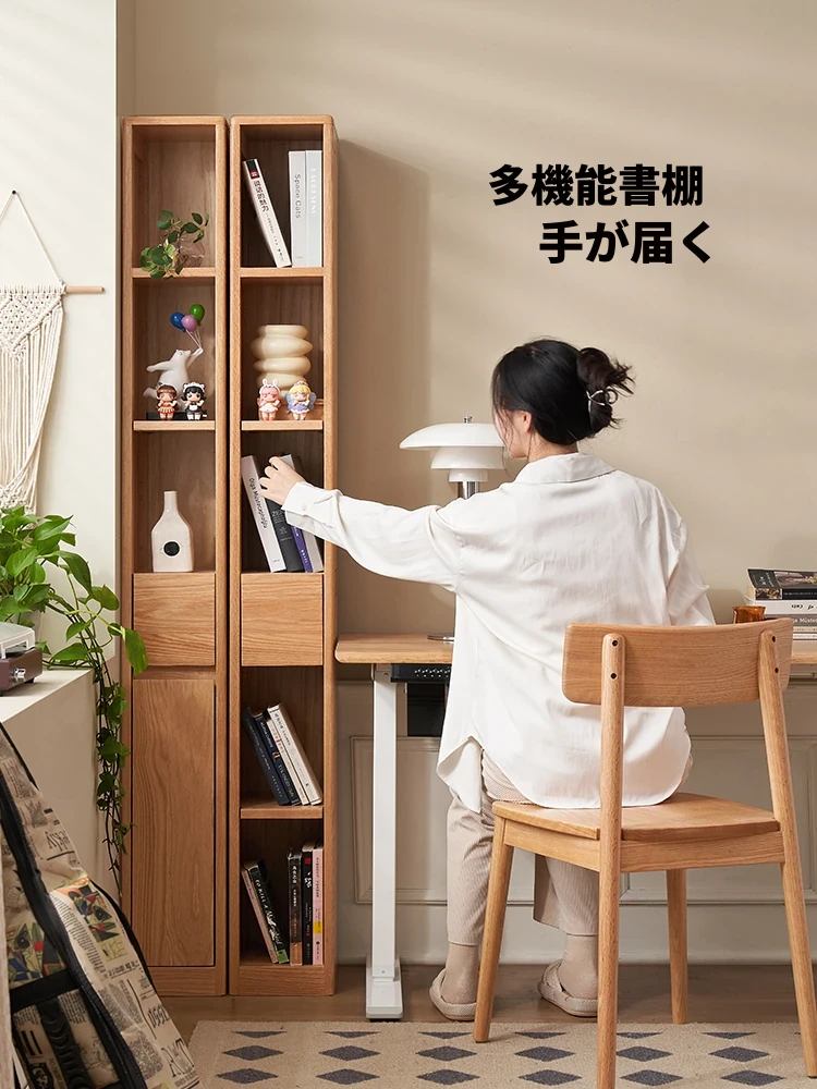 原木の魅力を引き立てる!『全実木オーク製スリムブックシェルフ L7171』- スペースを有効活用し、スタイリッシュに収納!狭い隙間にもフィットするおしゃれなデザインで、あなたのライブラリーを素敵に演出します。