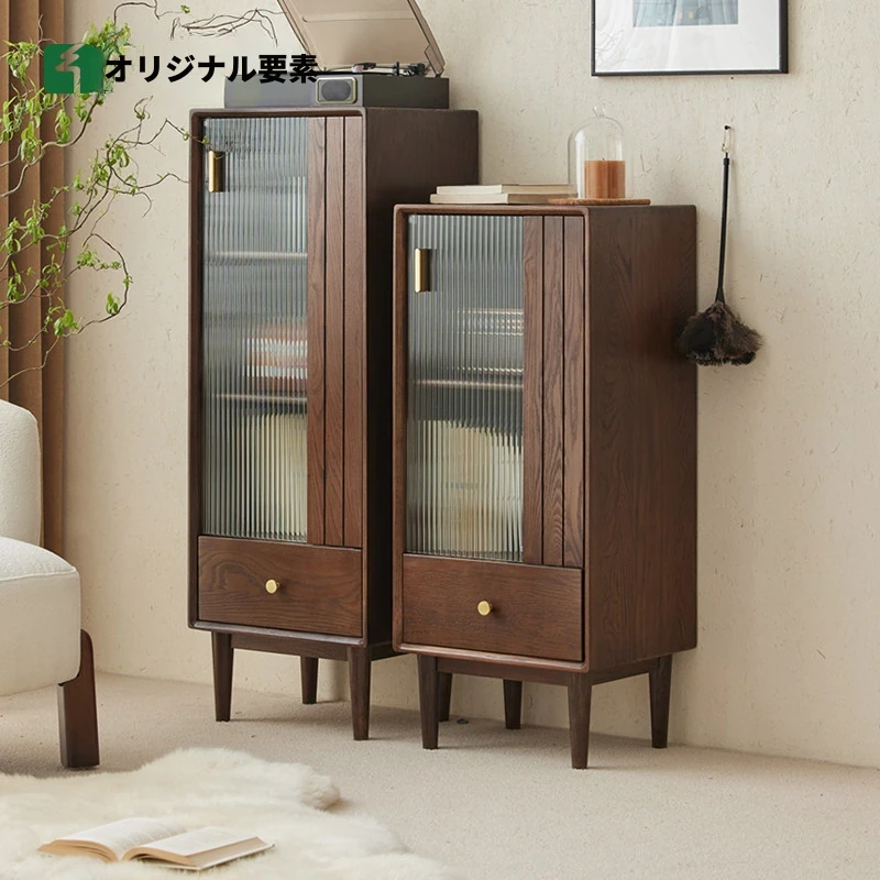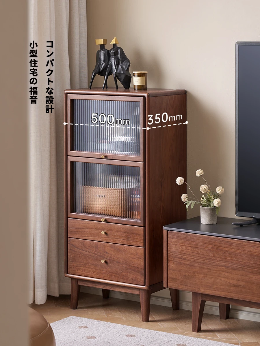 オリジナルエッセンス全無垢材サイドボード - 北米産ウォールナット使用、贅沢感あふれる小型ダイニング収納キャビネットB5144。洗練されたデザインで、あなたの食卓を美しく彩ります!