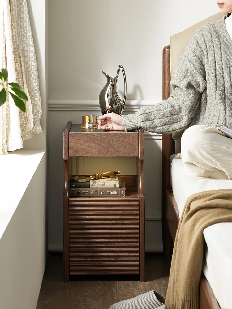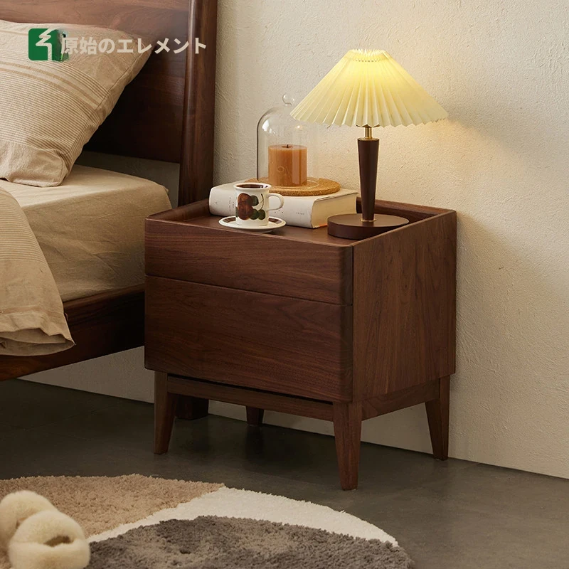 原始元素の北米ブラックウォールナット製ベッドサイドテーブル - シンプルで洗練されたデザイン、あなたの寝室に自然の温もりをプラス!