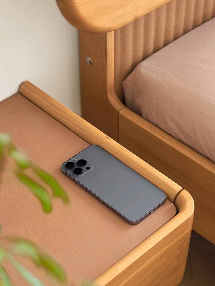 オリジナルエレメンツの全無垢材ベッドサイドテーブル - 多機能チェリーウッド製で、ワイヤレス充電対応の浮遊感あるデザイン!L5021で、あなたの寝室をスタイリッシュに!