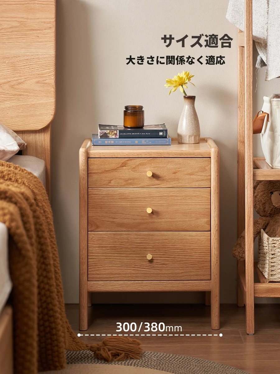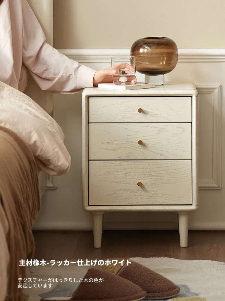 オリジナルエッセンス 全木製モダンシンプル ホワイトクリーム風 オーク製ベッドサイドキャビネット M7021 - スタイリッシュな収納でお部屋を演出!