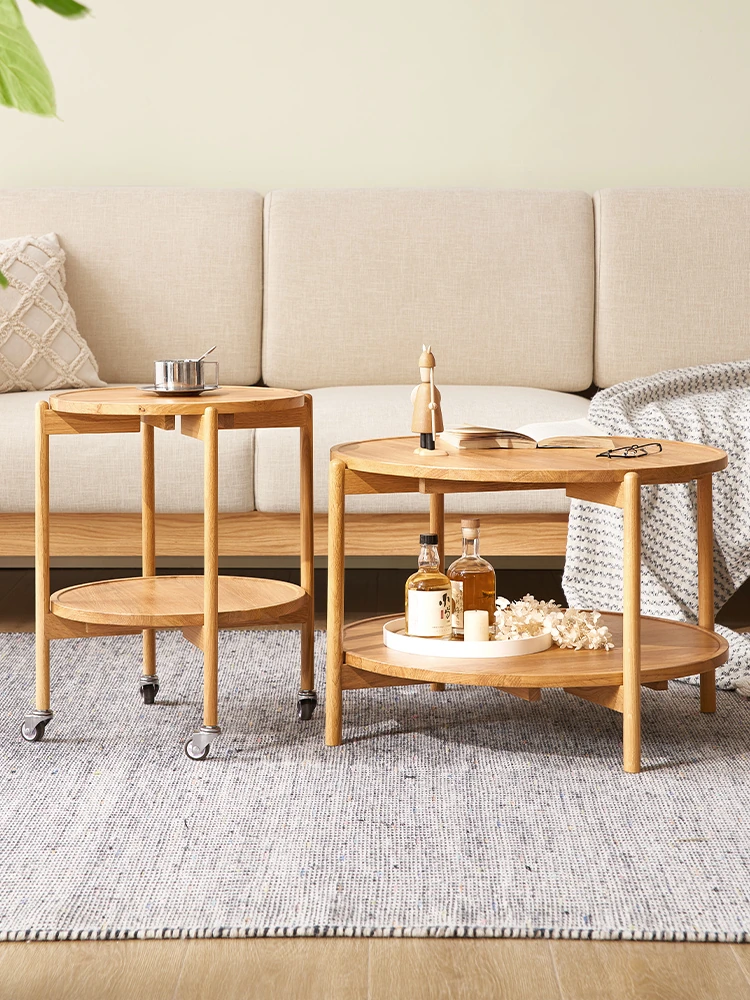 原木素材のシンプルな無垢オークコーヒーテーブル|現代的なリビングにぴったりの小型ティーテーブル H7071