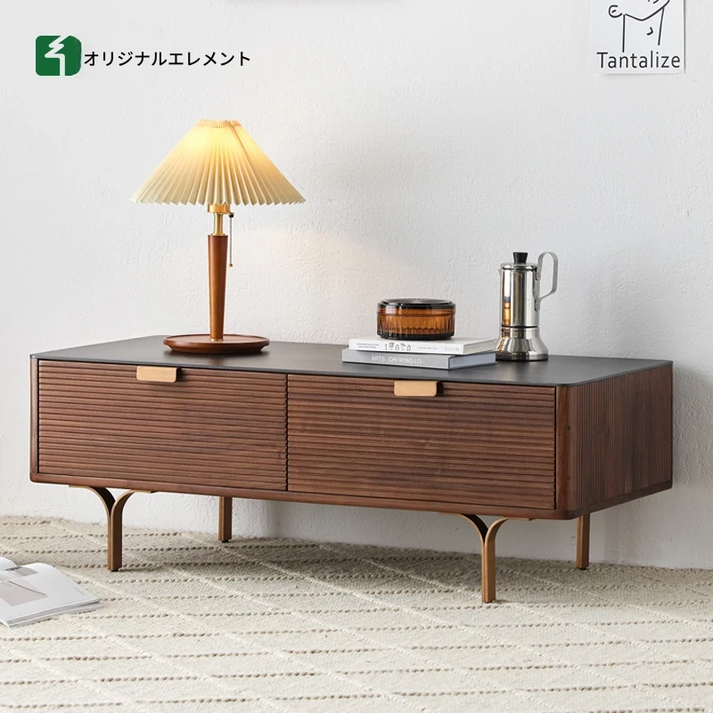 高級感漂う北米産ブラックウォールナットの無垢材使用!オリジナルエレメントの天然石テーブルトップ付き、洗練されたデザインのリビングルーム用コーヒーテーブルI6073。あなたの空間を格上げする一品!