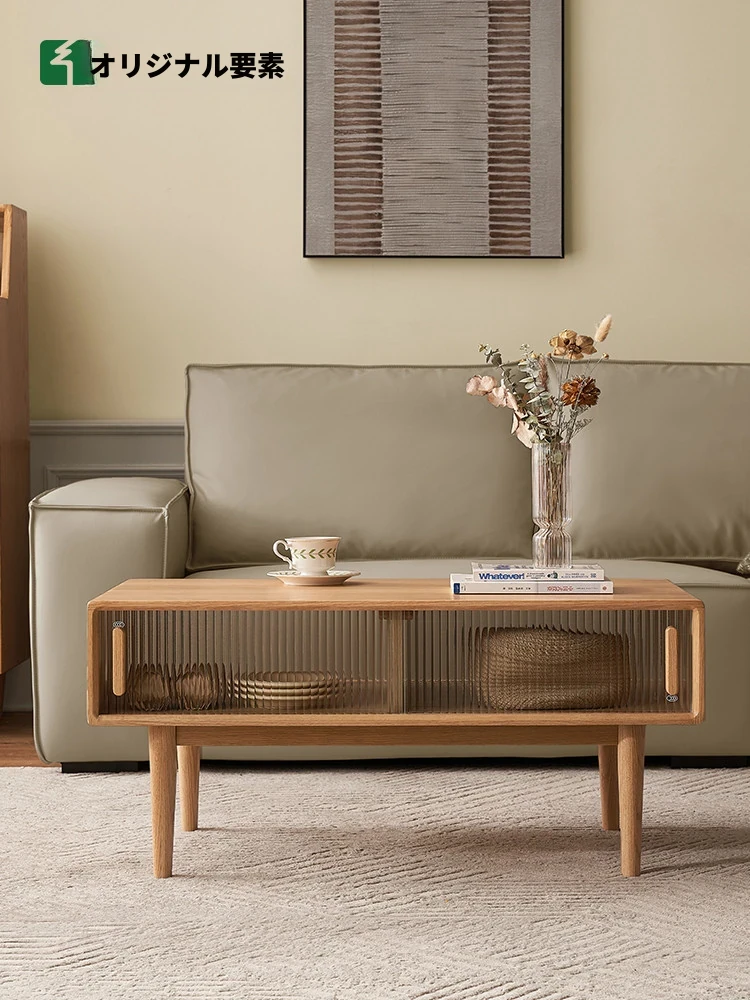原木のエッセンスが薫る!小型リビングにぴったりの現代的シンプルデザイン、ガラス天板の実木コーヒーテーブルB3079 - 自然美と機能性を兼ね備えたおしゃれな茶台。