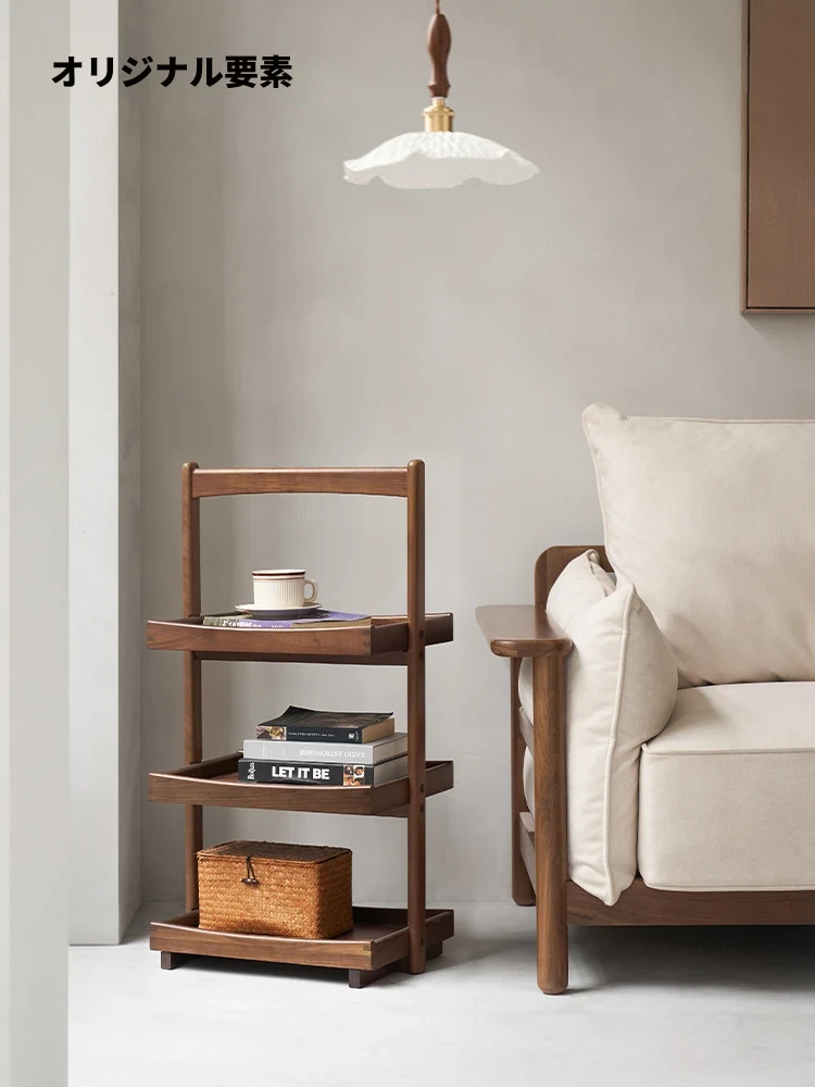 ナチュラルオークの北米ブラックウォールナット製ハイエンドサイドテーブル - リビングにぴったりなシンプルで洗練されたデザインの収納ラック B5181