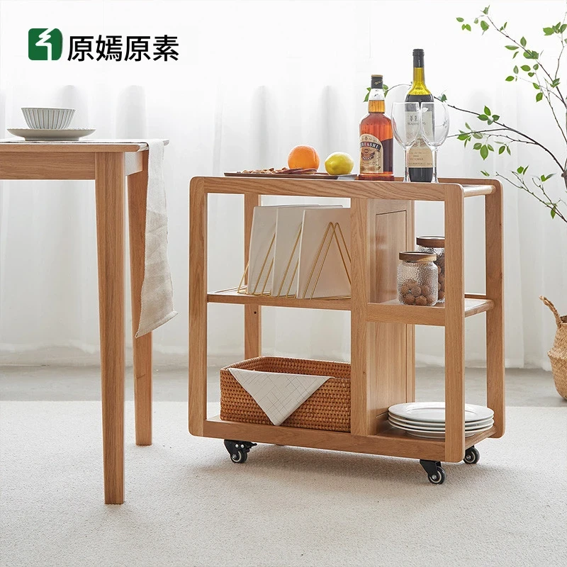 原木の美しさを引き立てる!北米産ウォールナット製・移動便利なサイドテーブルB5106 おしゃれで機能的なリビングに最適な小型キャリーカートデザイン。