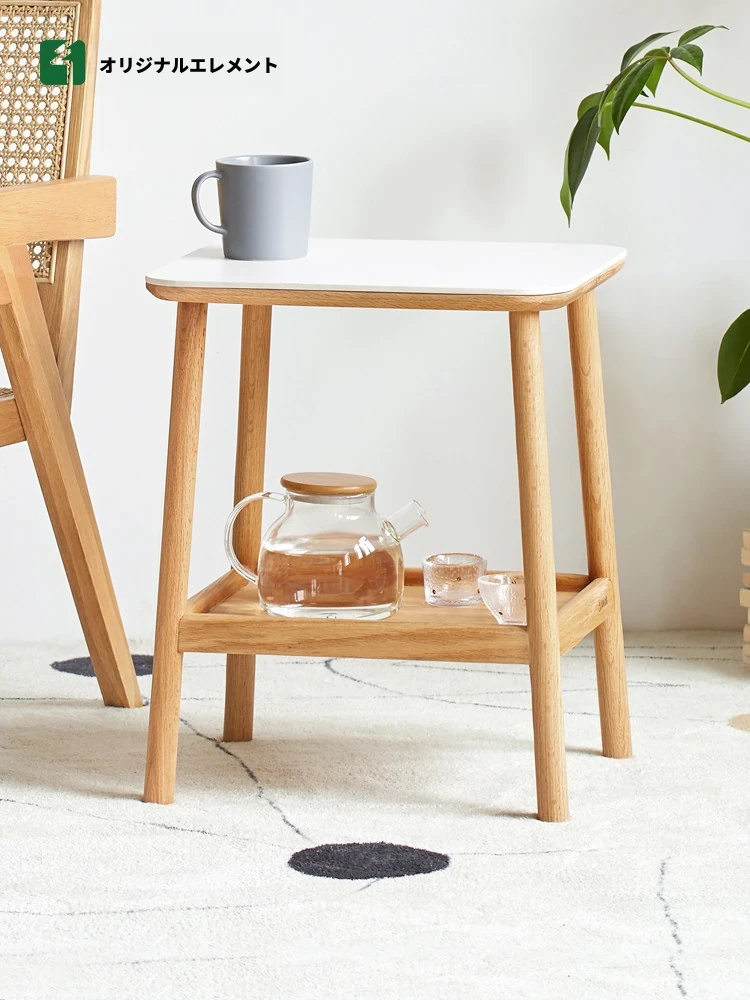 原木製シンプルサイドテーブル - おしゃれな収納ラック、リビング・ソファ横・寝室用ナイトテーブルに最適!L7183