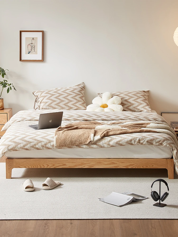 "Modern Minimalist Solid Wood Bed - Double Oak Tatami Bed Frame without Headboard, Floating Design (Model L7017) - Perfect for Stylish and Comfortable Bedrooms"