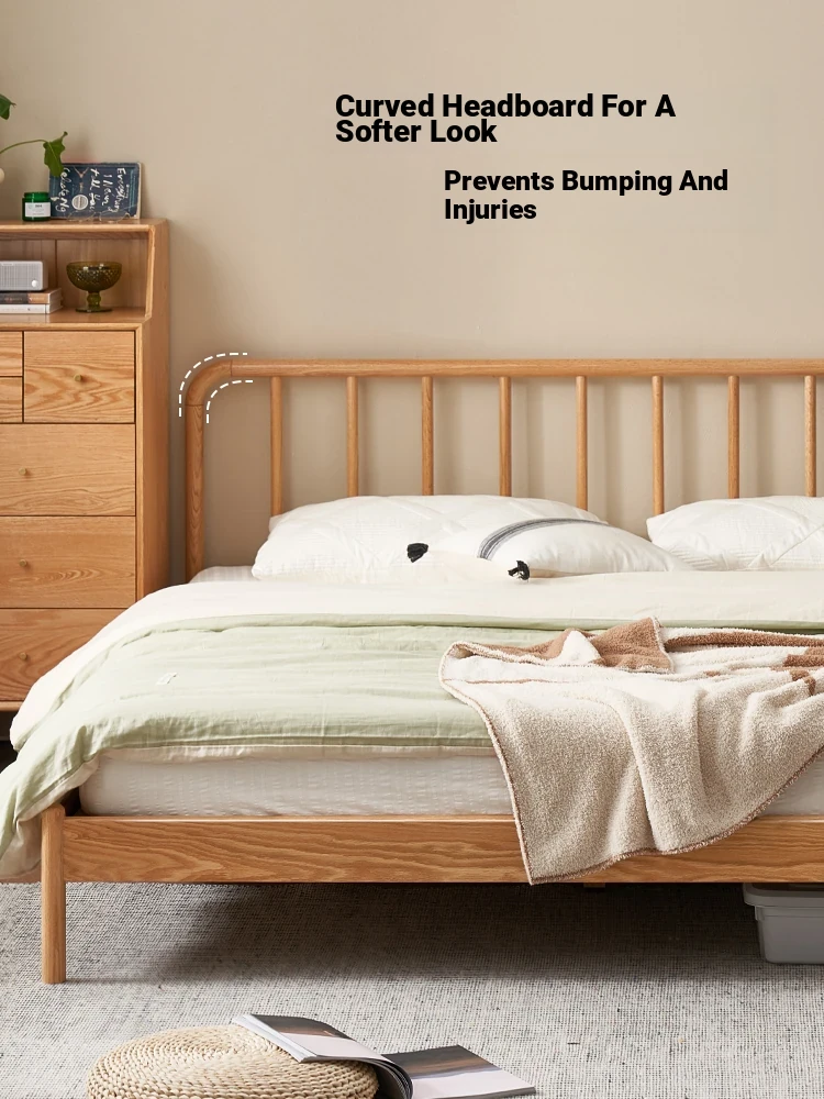 "Nordic Style Solid Wood Bed - Modern Minimalist White Oak 1.8m Double Bed for Master Bedroom - Elegant and Durable Design for a Cozy and Stylish Sleep Space"
