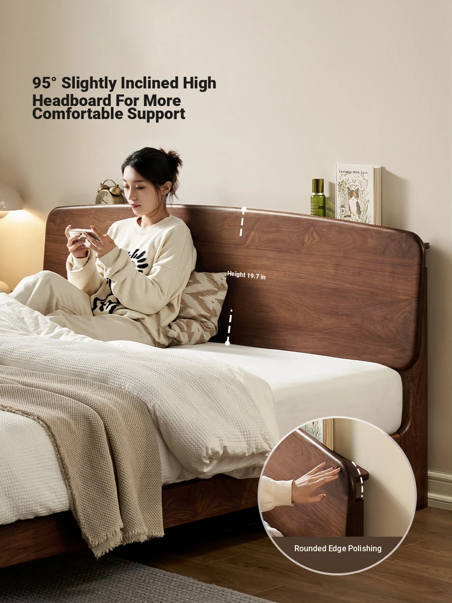Experience Luxury with Our Solid Wood Bed - North American Black Walnut, 1.8m King-Size, Elegant Design for Master Bedrooms, Model C9008