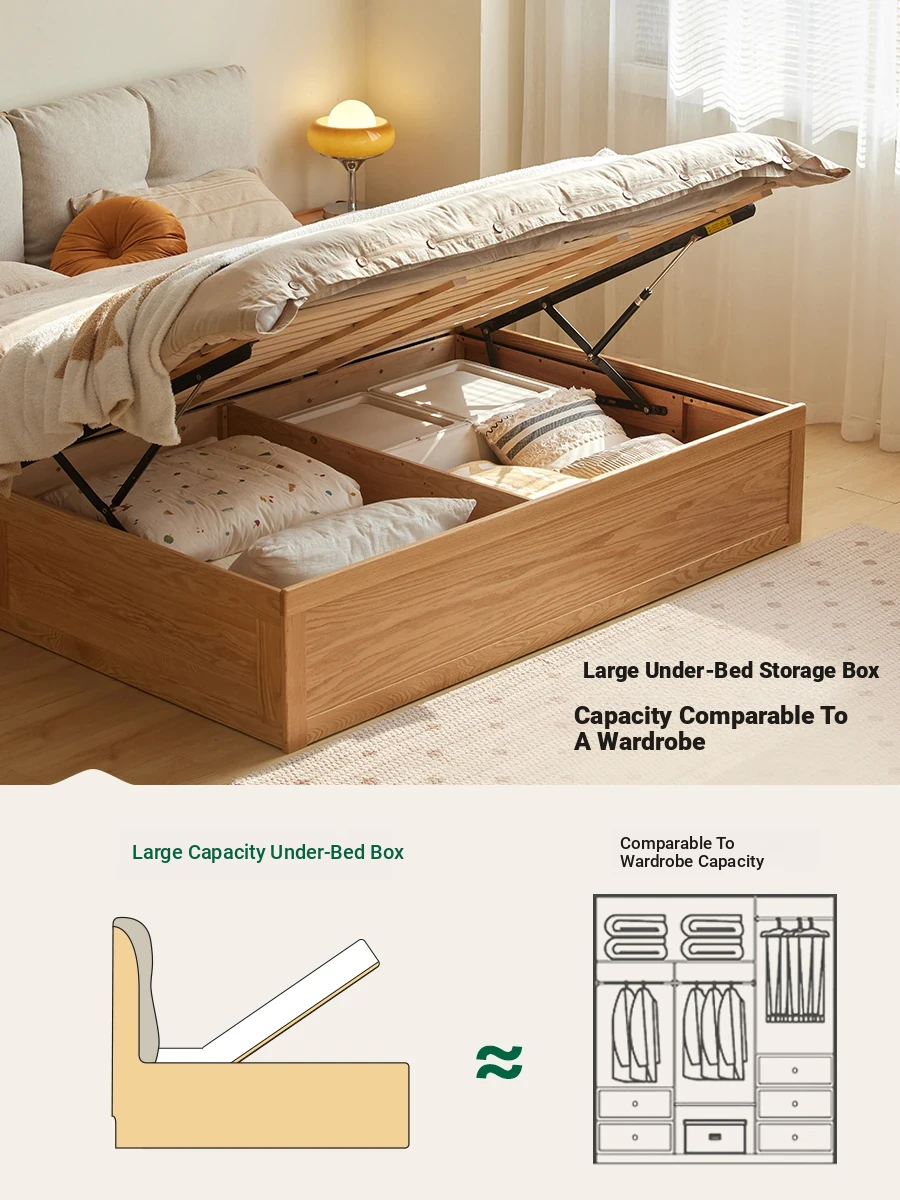 Modern Simple Oak Storage Bed - Solid Wood High-Box Design for Small Bedrooms, Perfect for Master Suites - L701F
