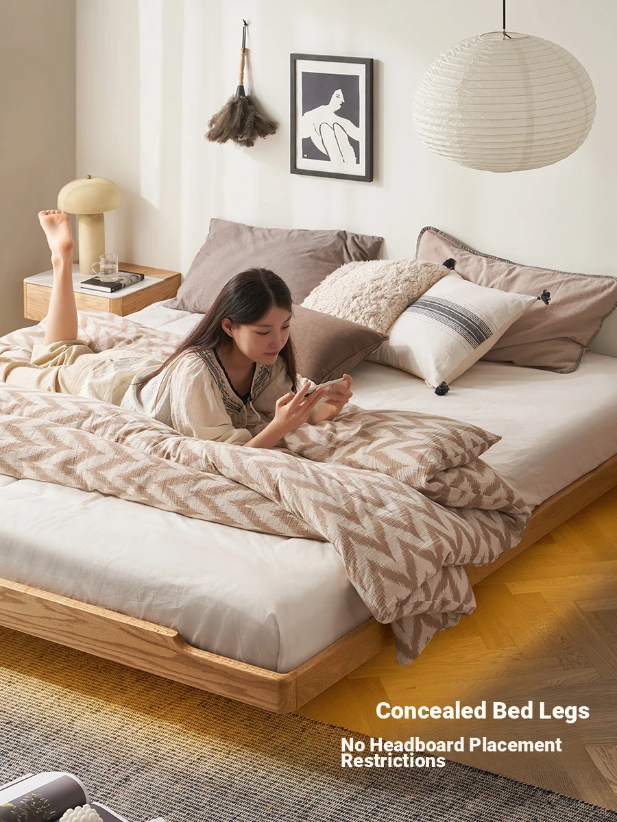"Modern Rustic Solid Wood Platform Bed - Simple & Elegant 1.8m Oak King Size Floating Storage Bed (Model L701P) - Optimize Your Bedroom with Stylish Functionality!"