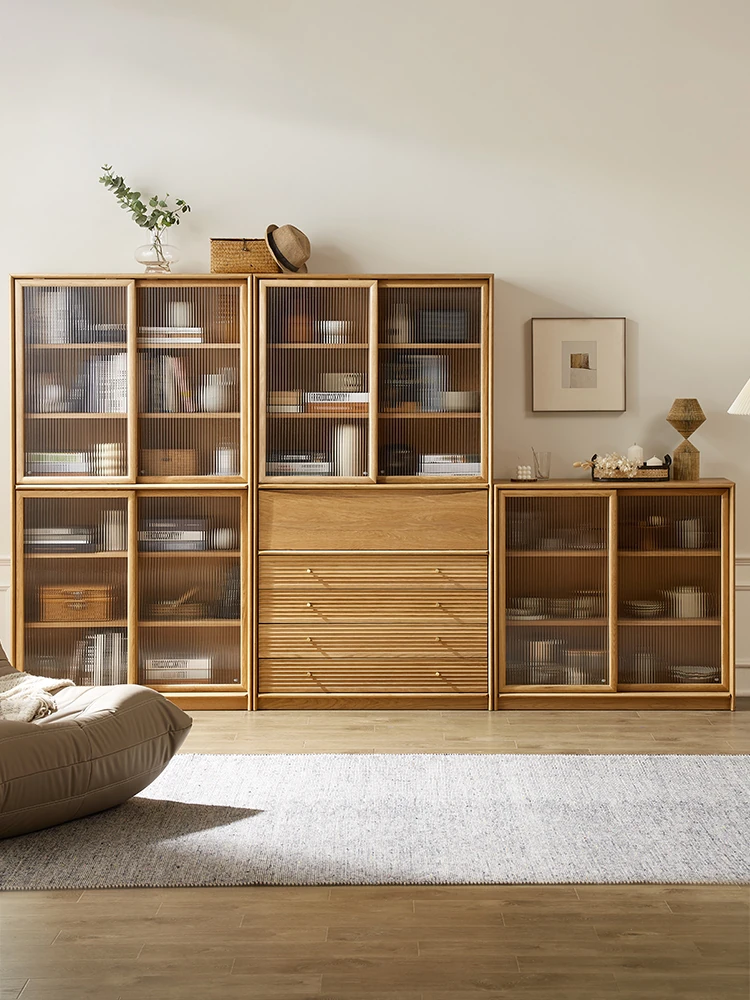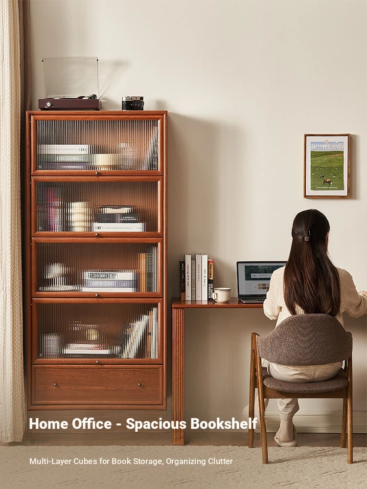 Solid Wood Modular Bookshelf with Doors - Elegant Floor-to-Ceiling Storage Cabinet for Home Office, Stylish B3175 Bookshelf Unit