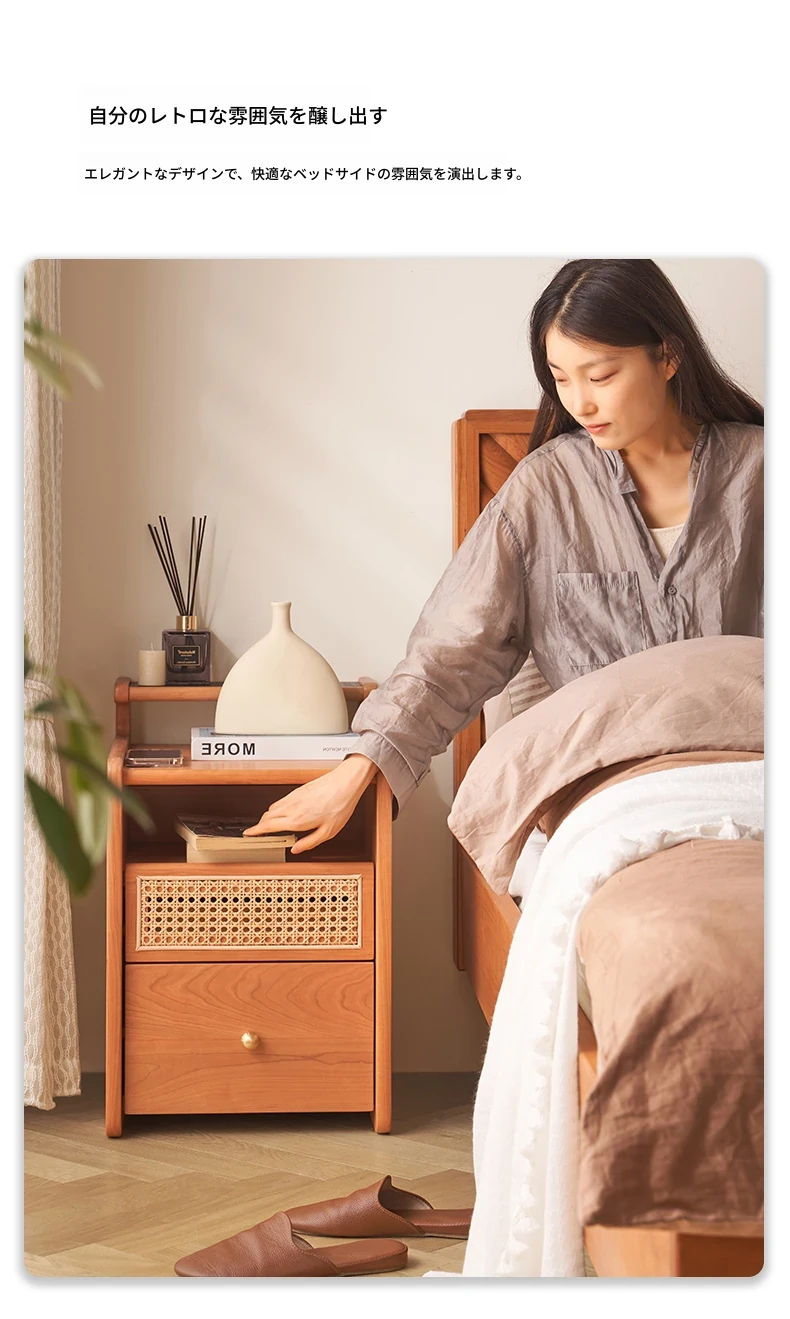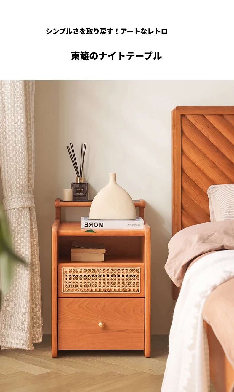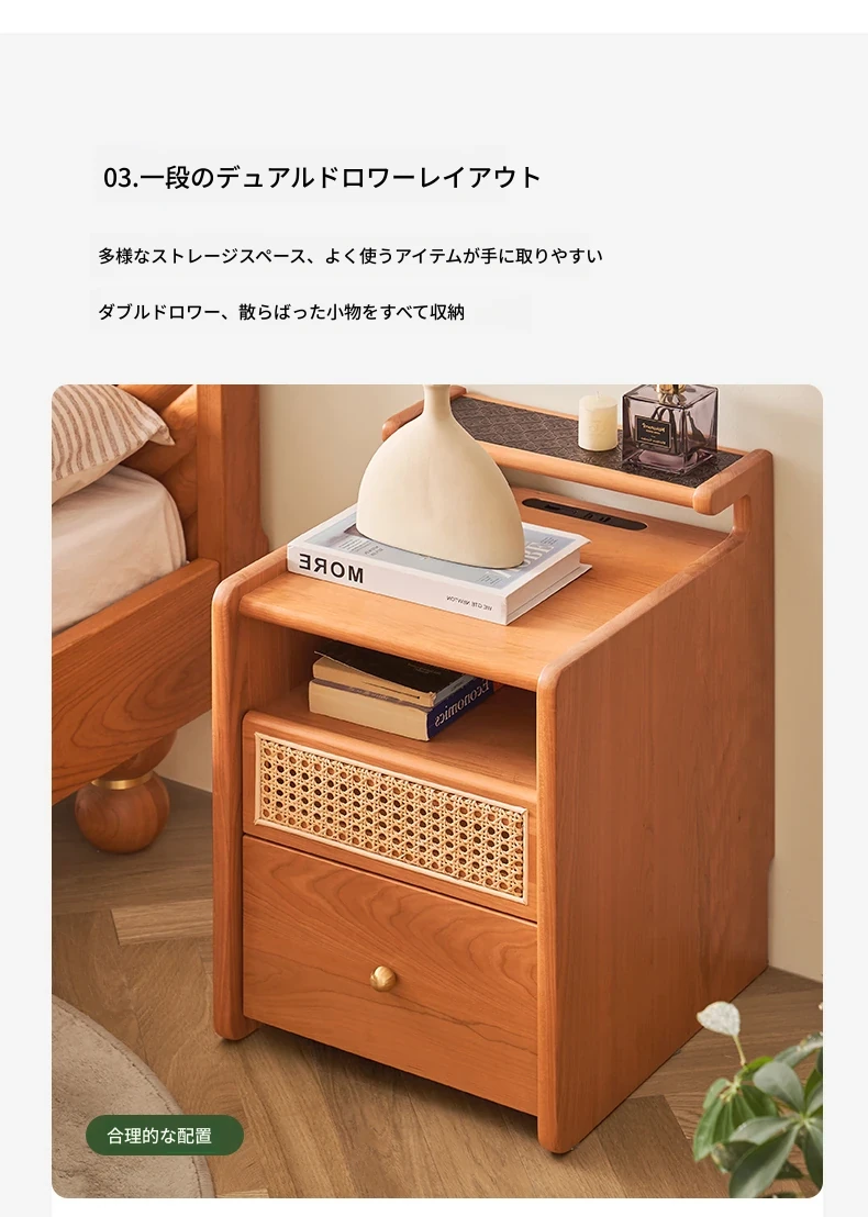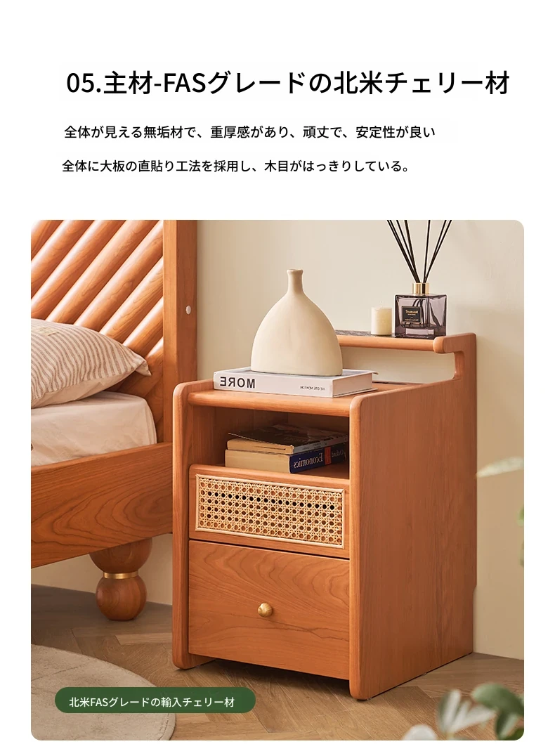 原始の原素 フルウッド ベッドサイドキャビネット 北米チェリー材を使用した収納力抜群のモダンラグジュアリー 夢のような寝室空間を演出するL2022
