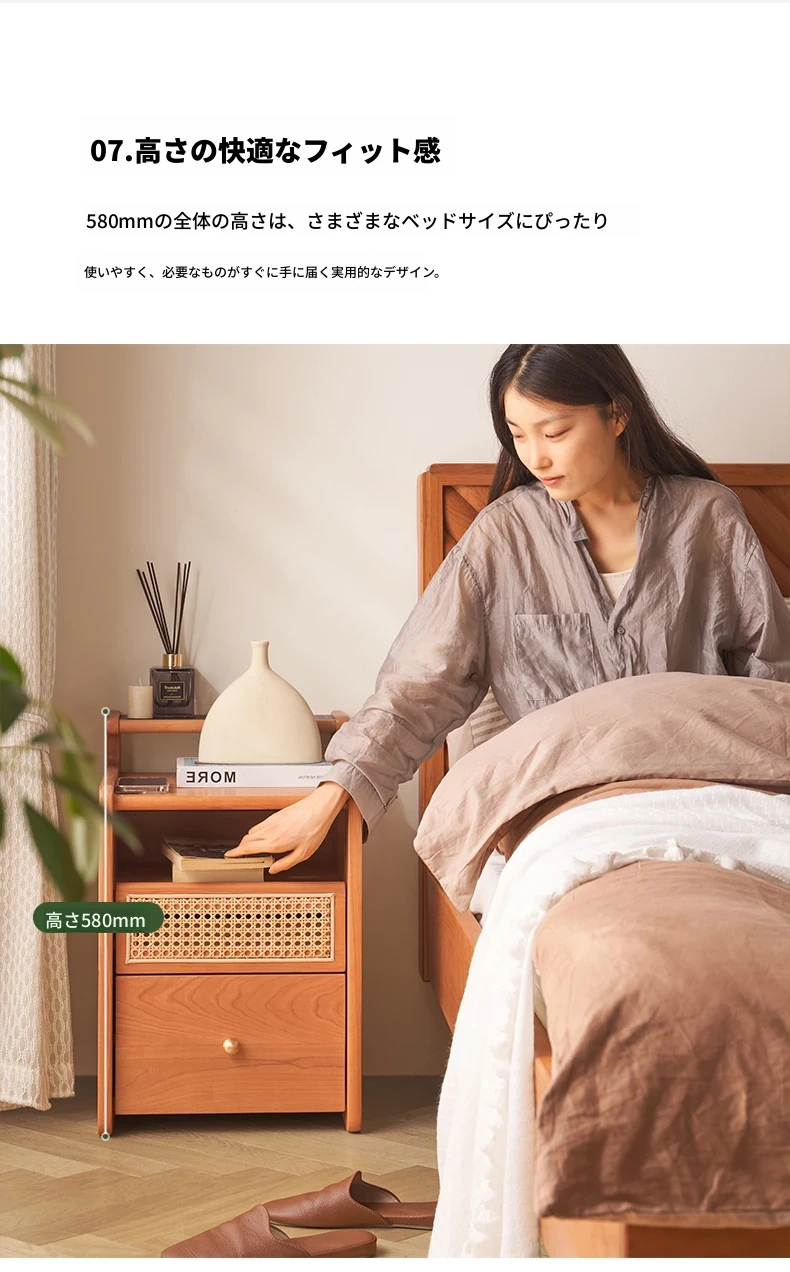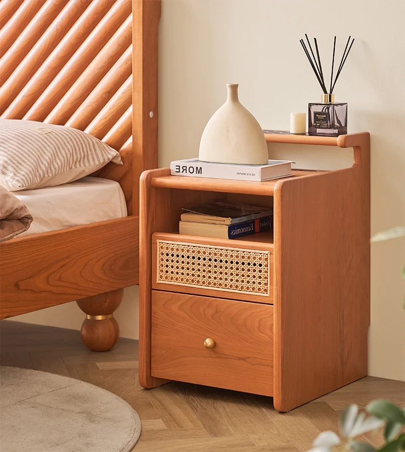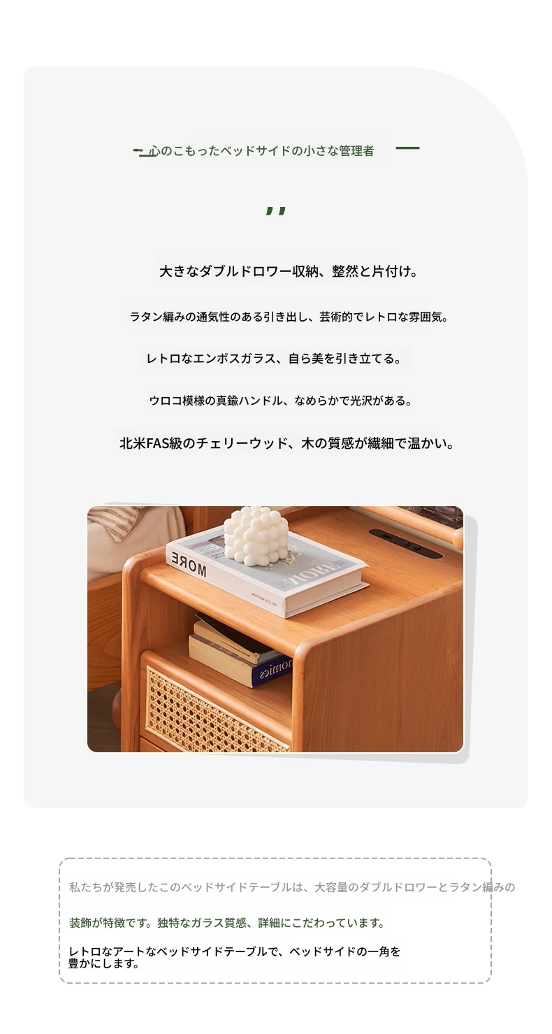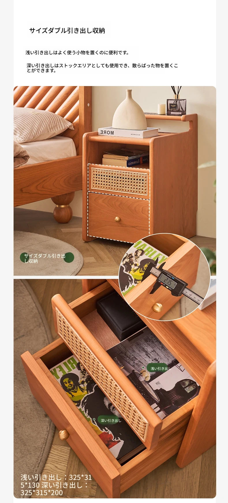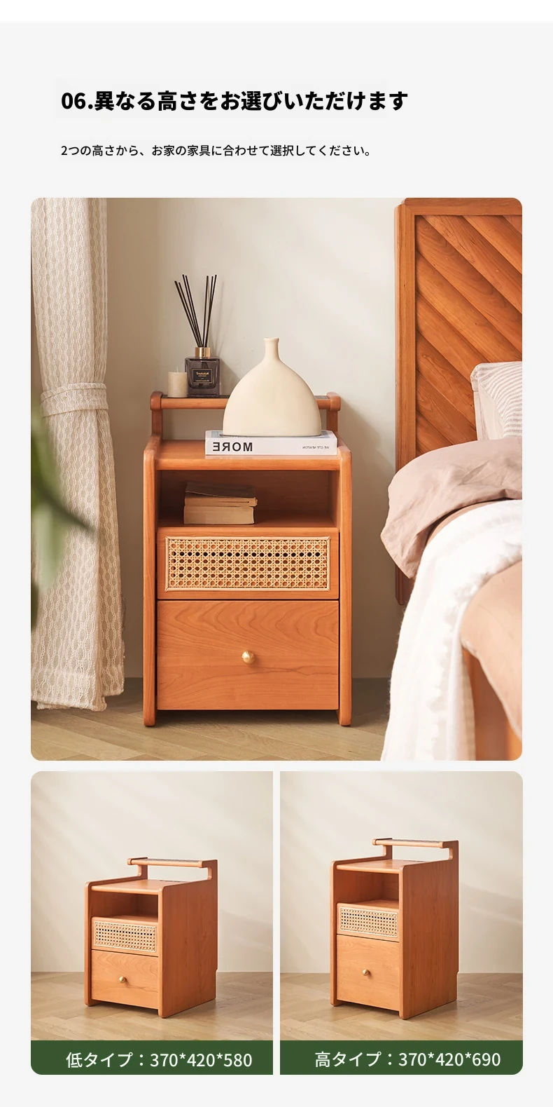 原始の原素 フルウッド ベッドサイドキャビネット 北米チェリー材を使用した収納力抜群のモダンラグジュアリー 夢のような寝室空間を演出するL2022