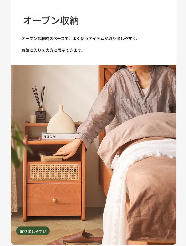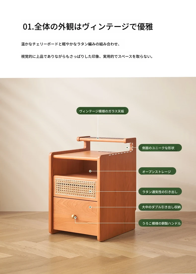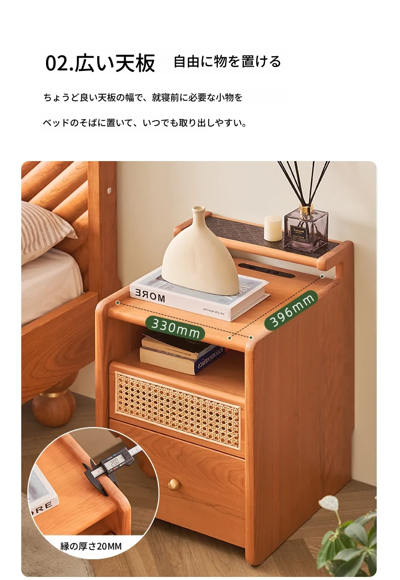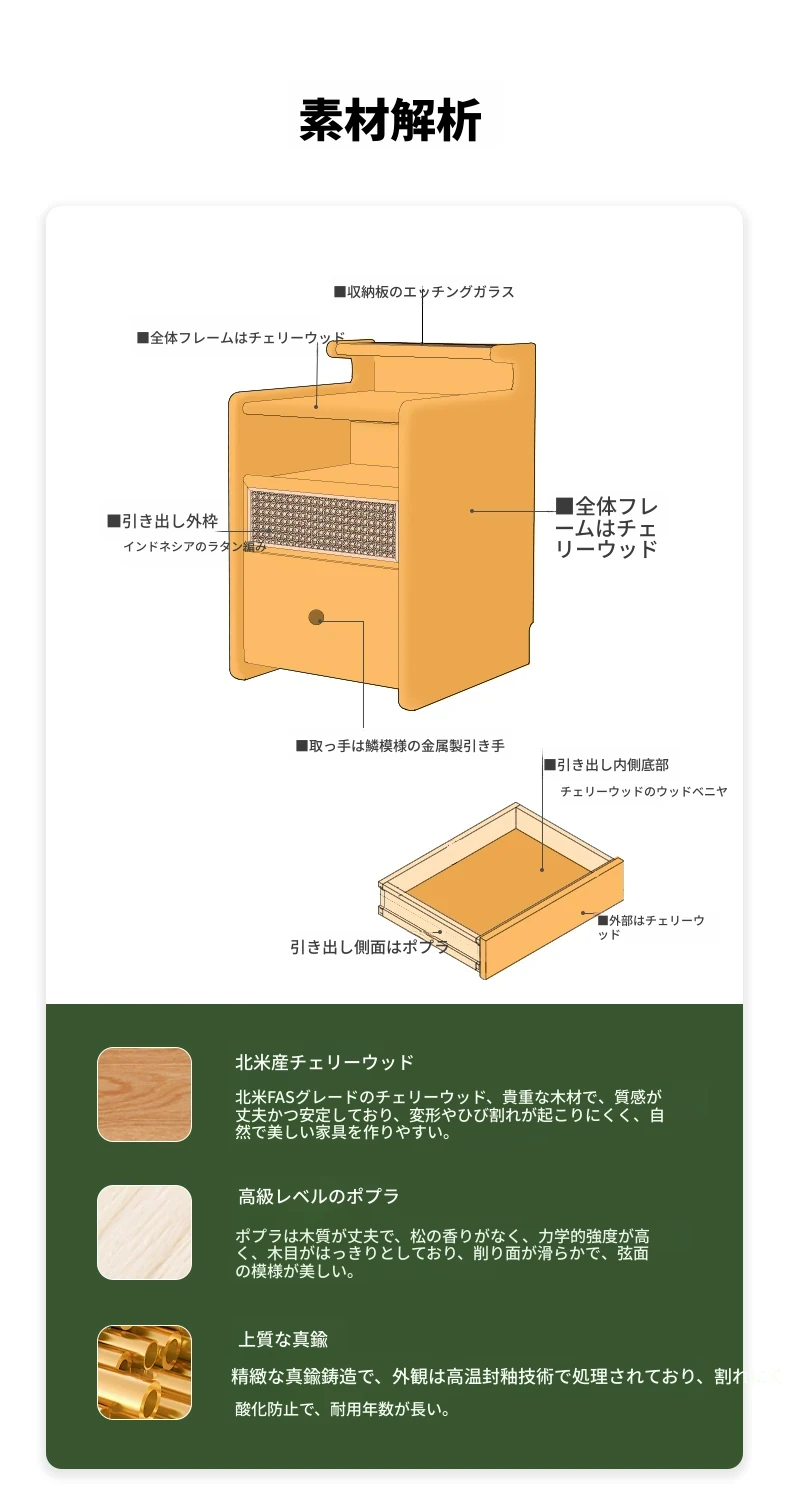 原始の原素 フルウッド ベッドサイドキャビネット 北米チェリー材を使用した収納力抜群のモダンラグジュアリー 夢のような寝室空間を演出するL2022