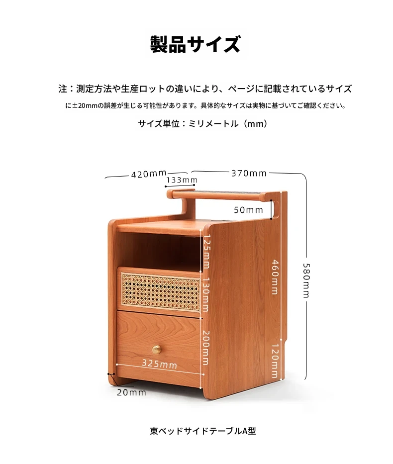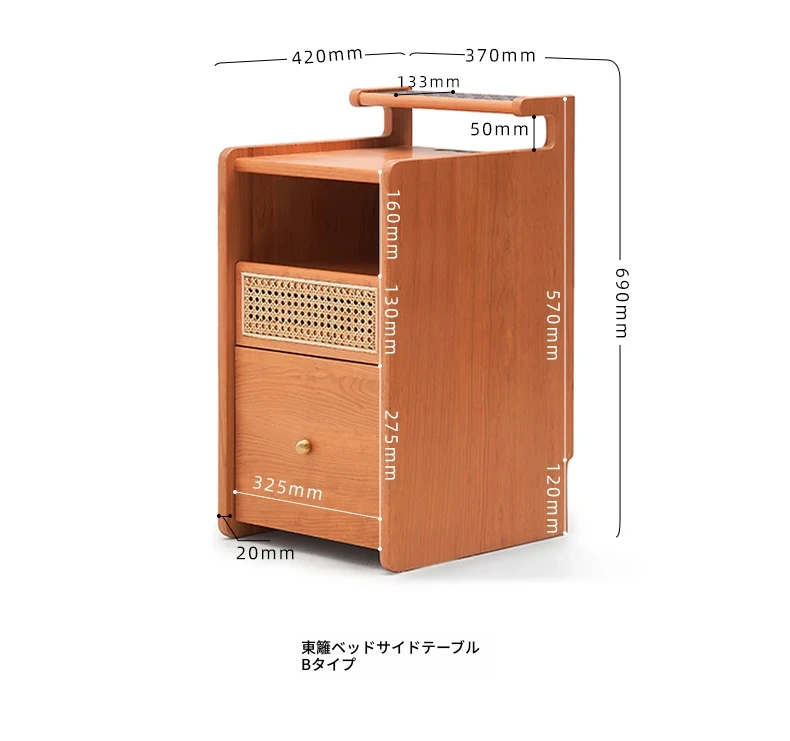 【チェリーウッド】東リベッドサイドテーブル(370*420*690)