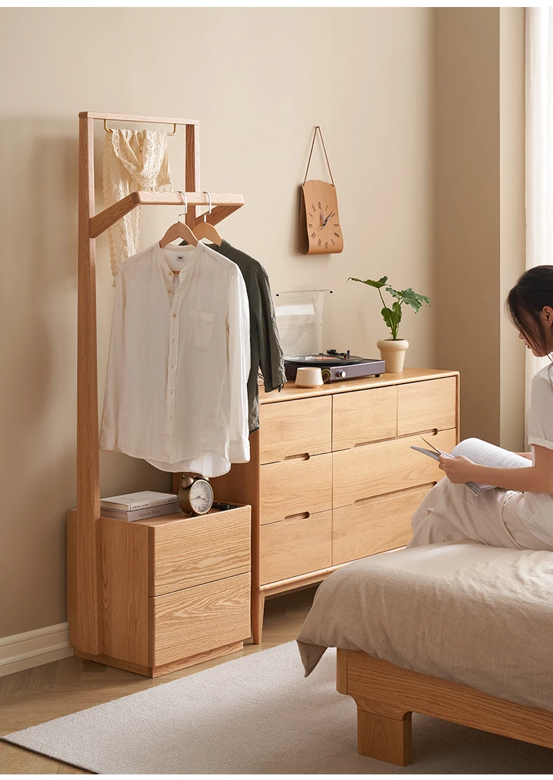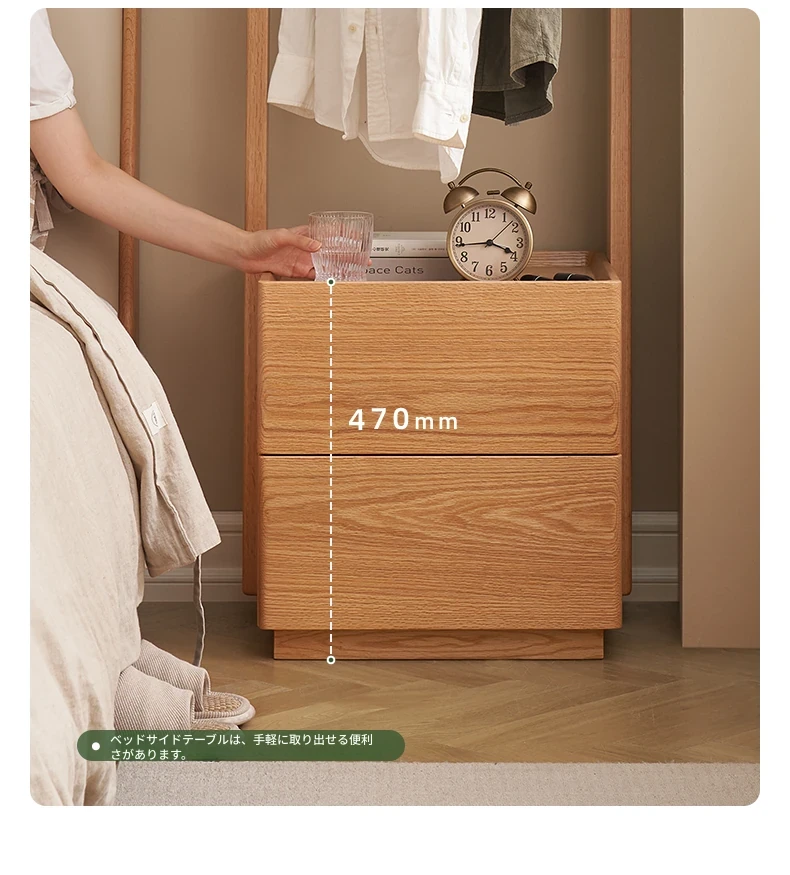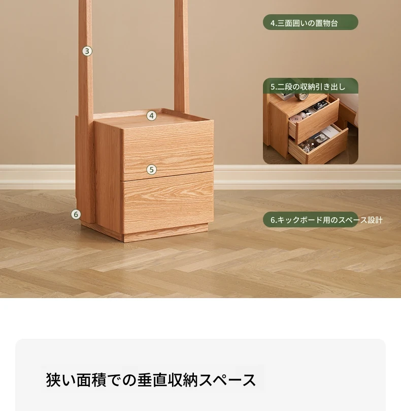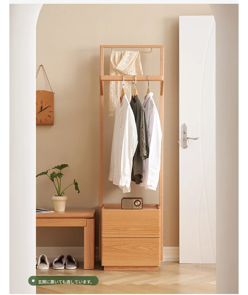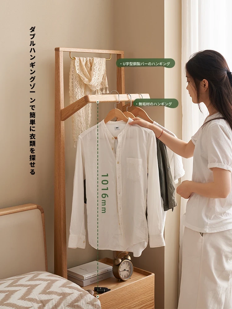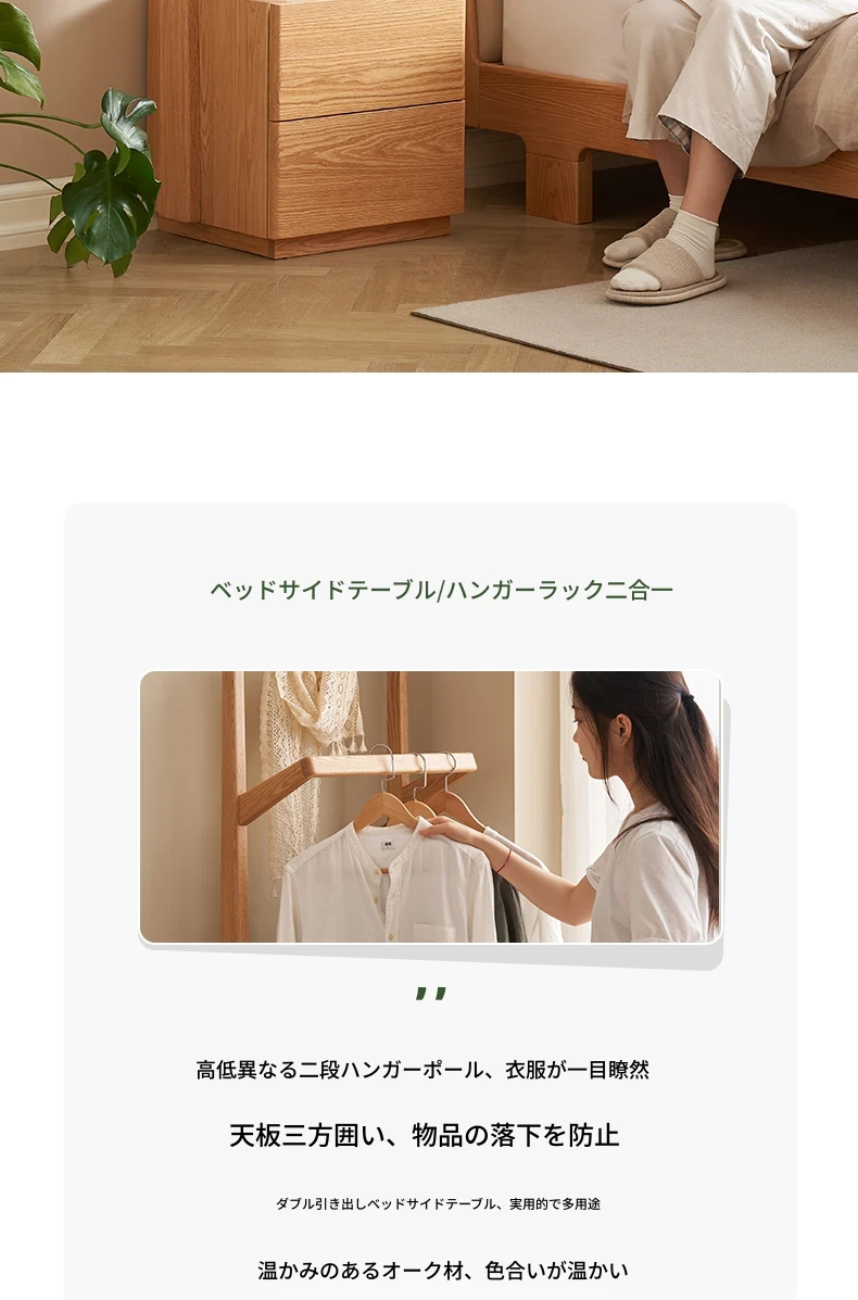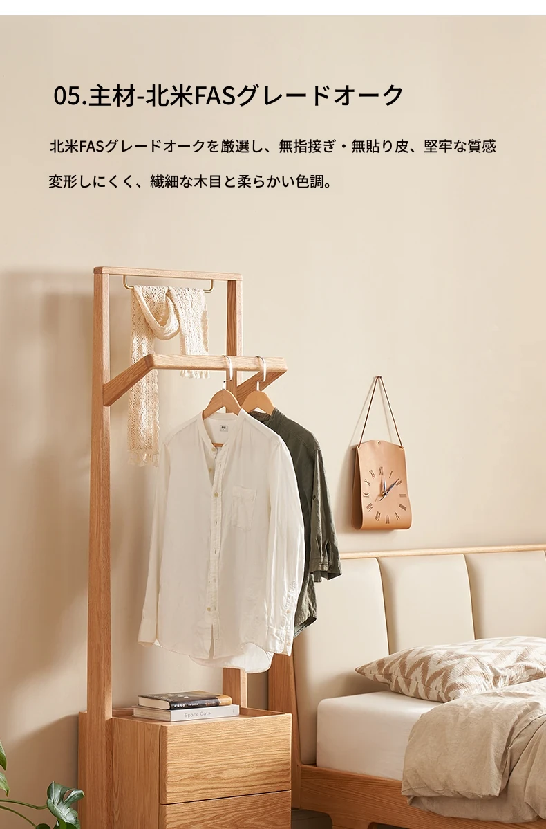 オリジナル素朴な全木製ベッドサイドテーブル|モダンミニマリズムデザイン|オーク材の耐久性とスタイルを両立|多機能コートスタンドと収納ラックL7026で、あなたの空間に洗練を。