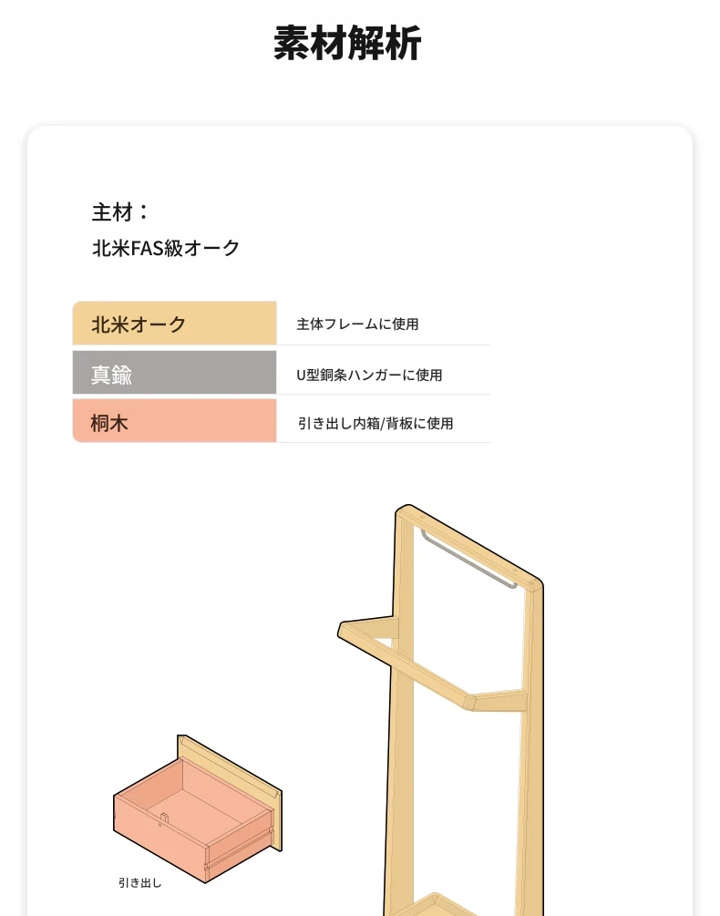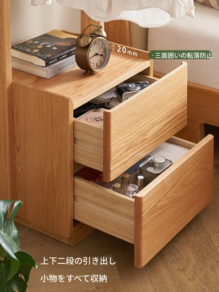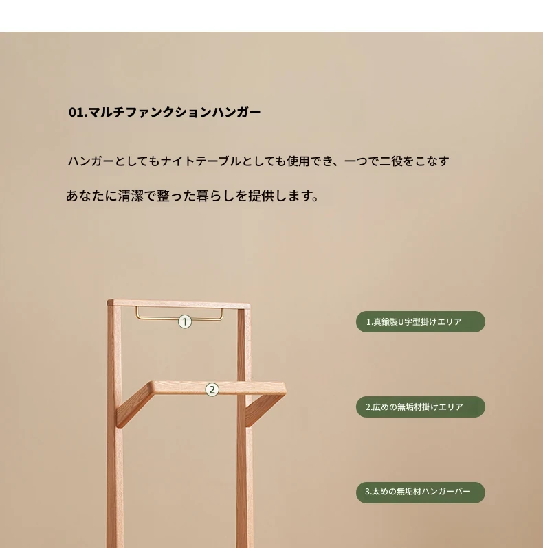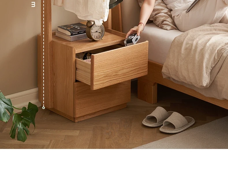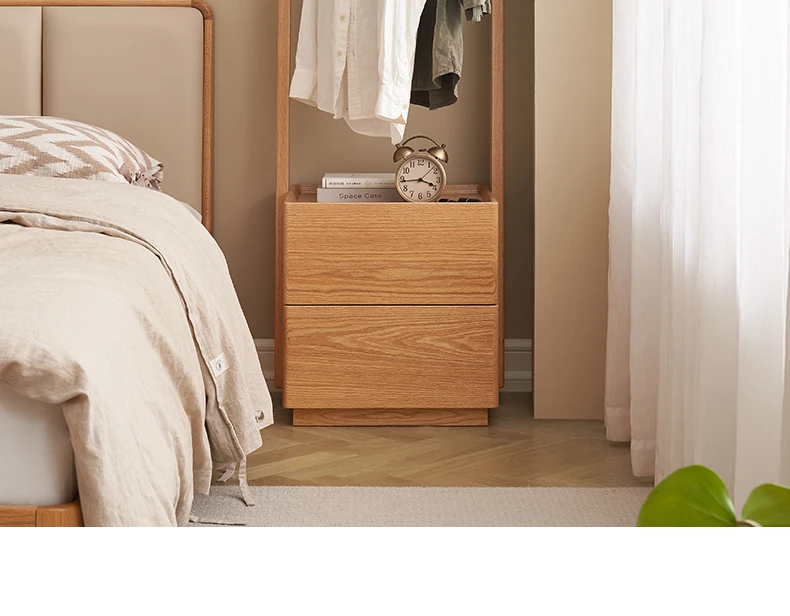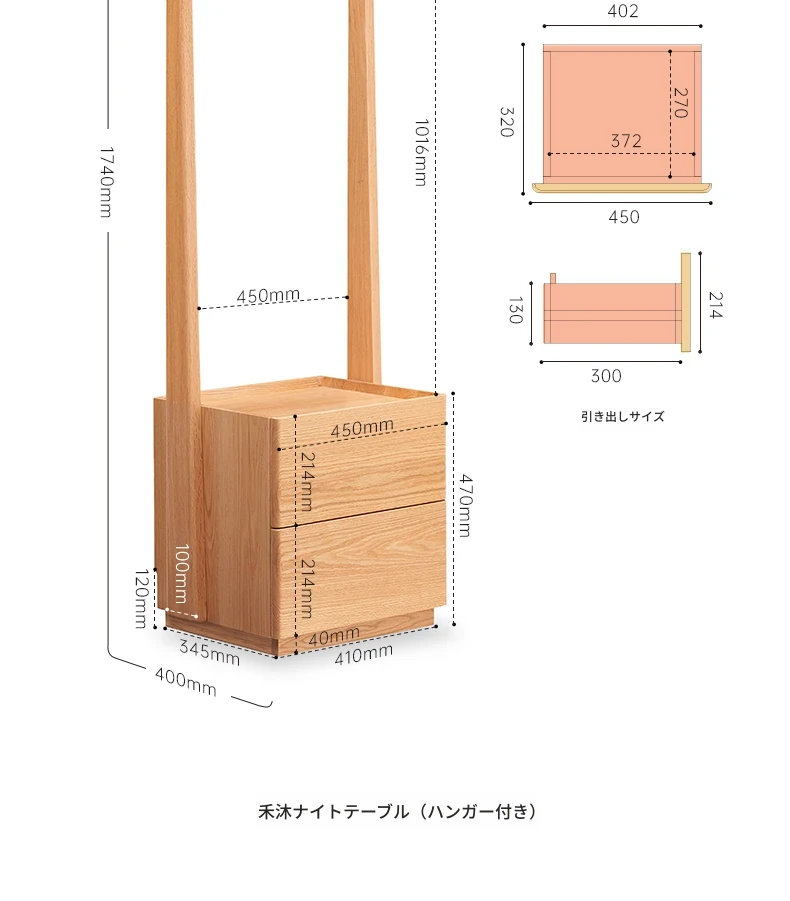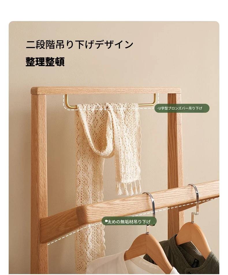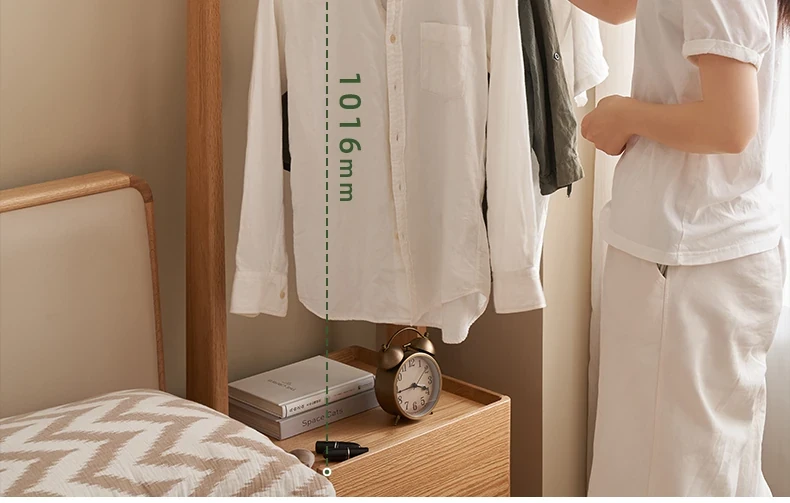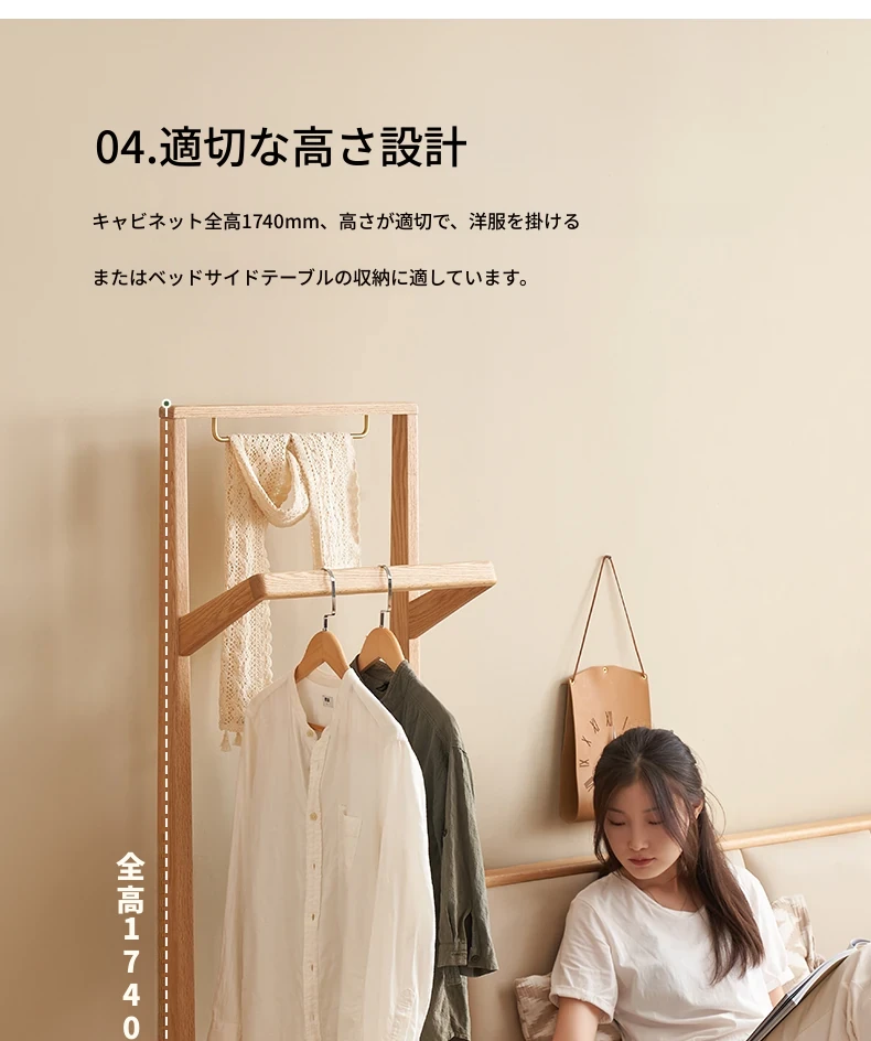 オリジナル素朴な全木製ベッドサイドテーブル|モダンミニマリズムデザイン|オーク材の耐久性とスタイルを両立|多機能コートスタンドと収納ラックL7026で、あなたの空間に洗練を。