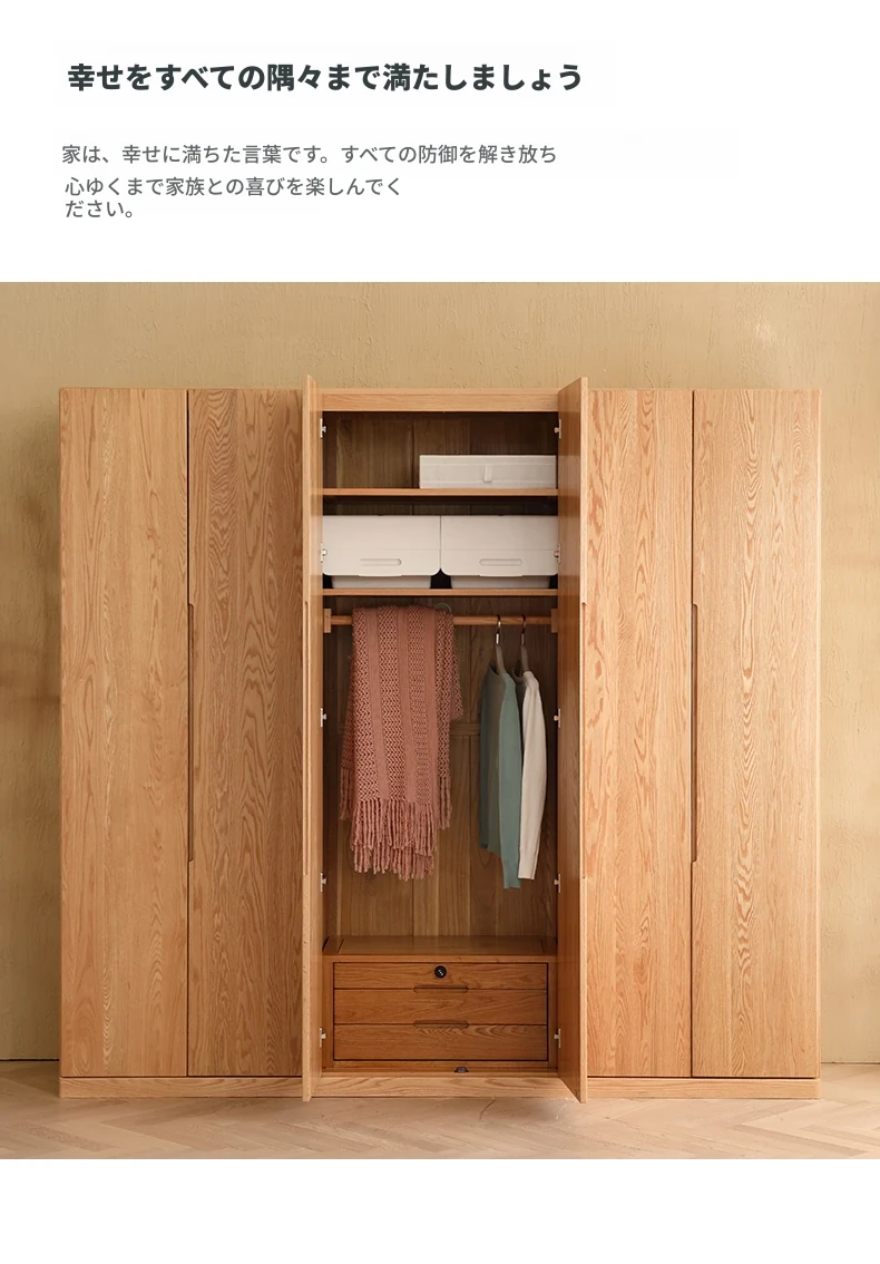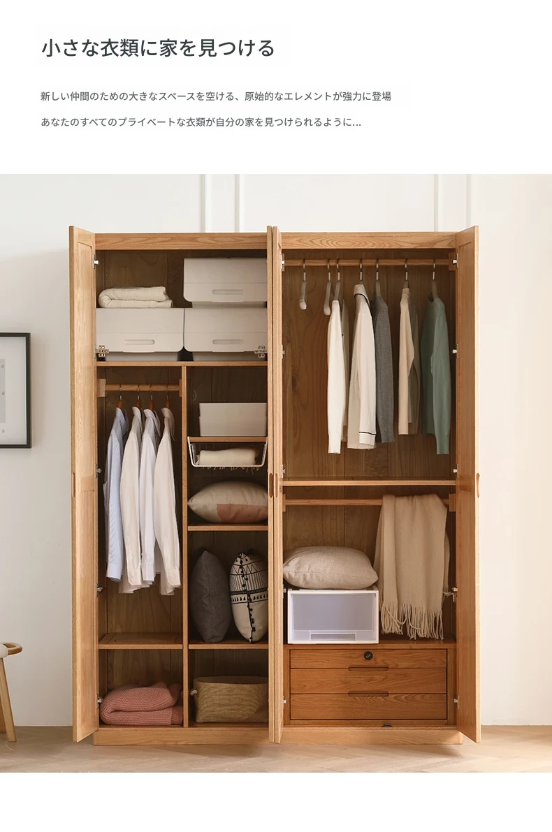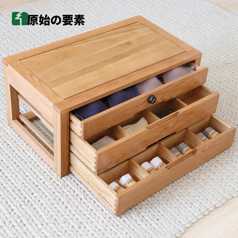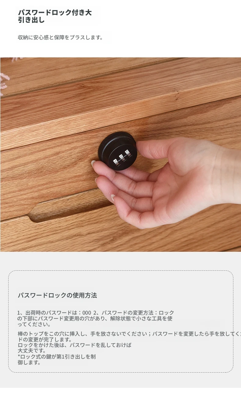 原木無垢材製のロック付き大引き出しチェスト - ベッドルーム収納に最適!A4046