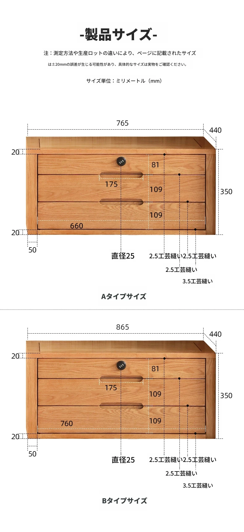 【オーク無垢材色】長さ0.76m/高さ0.35mロック付きキャビネットA(765*440*350mm)