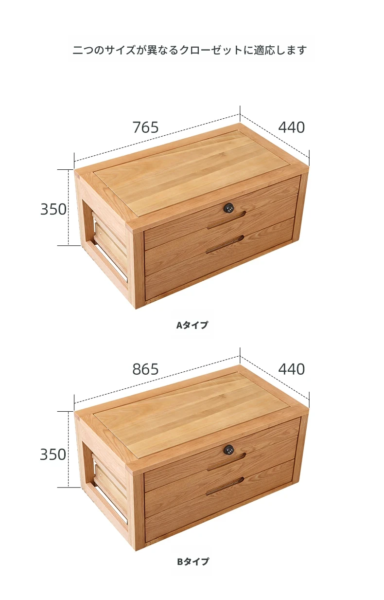 【オーク無垢材色】長さ0.86m/高さ0.35mロック付きキャビネットA(865*440*350mm)