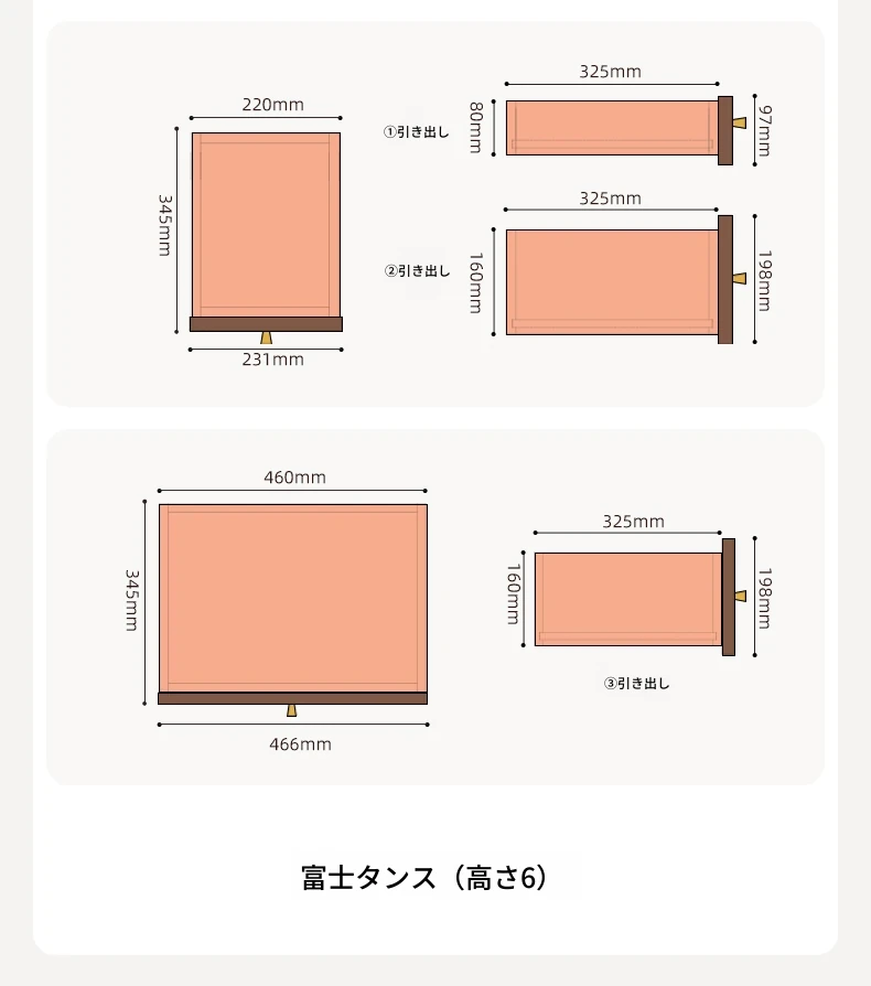 【ウォルナット色】高さ1.2mの六斗タンス(500*400*1200mm)